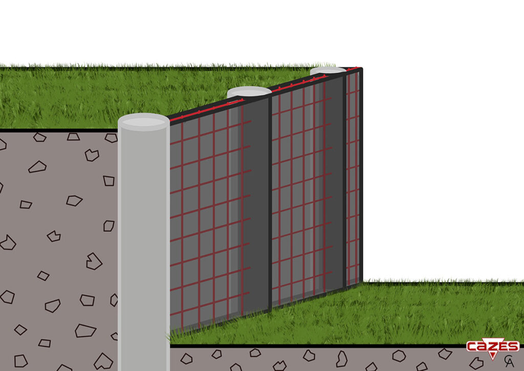 Entre ces profilés sont insérés des éléments horizontaux, tels que des madriers en bois, des panneaux en acier ou en béton, qui retiennent la terre derrière la paroi.